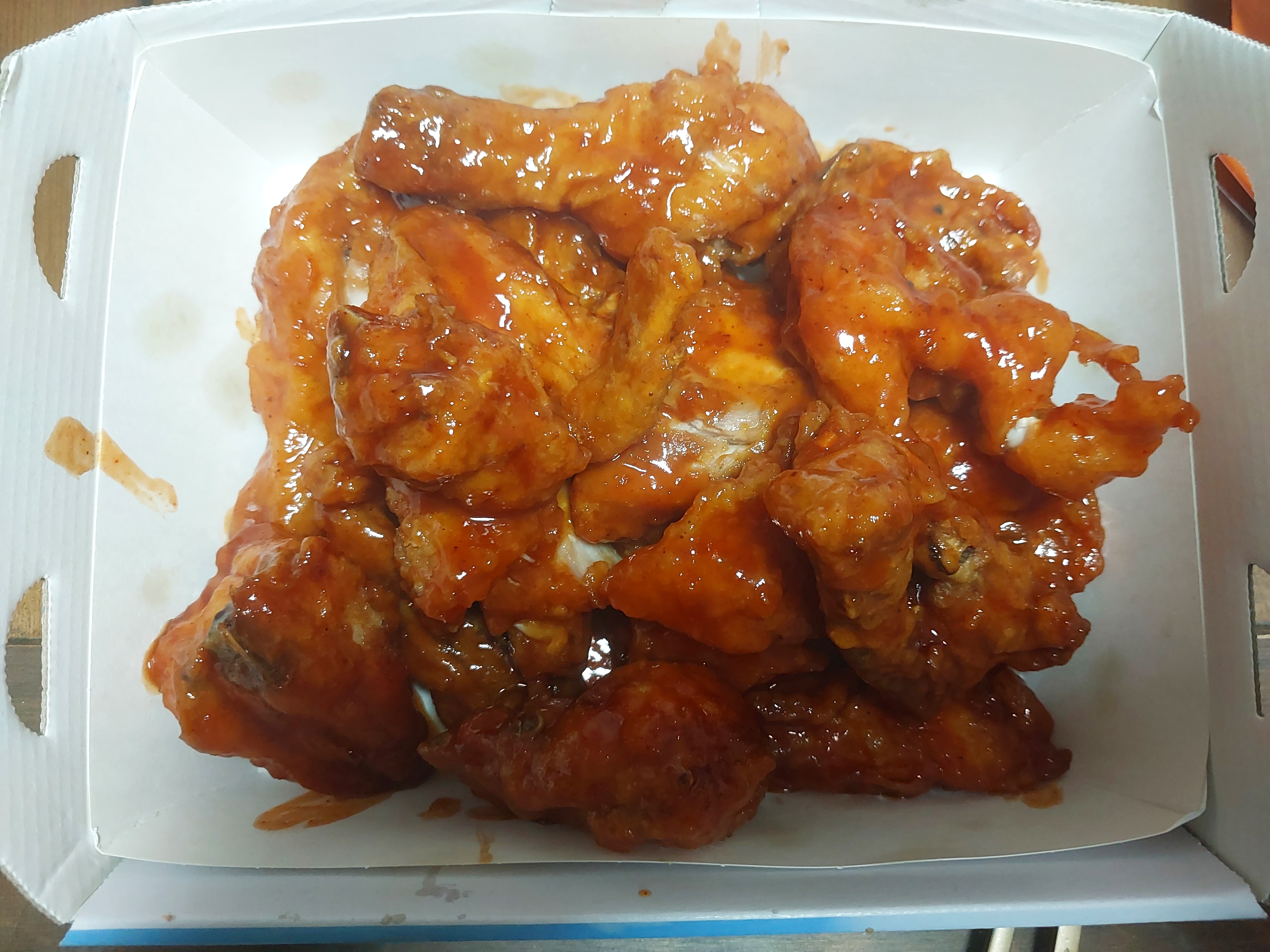 BBQ에서 신메뉴인 가루없는 뿜치킹 구입.