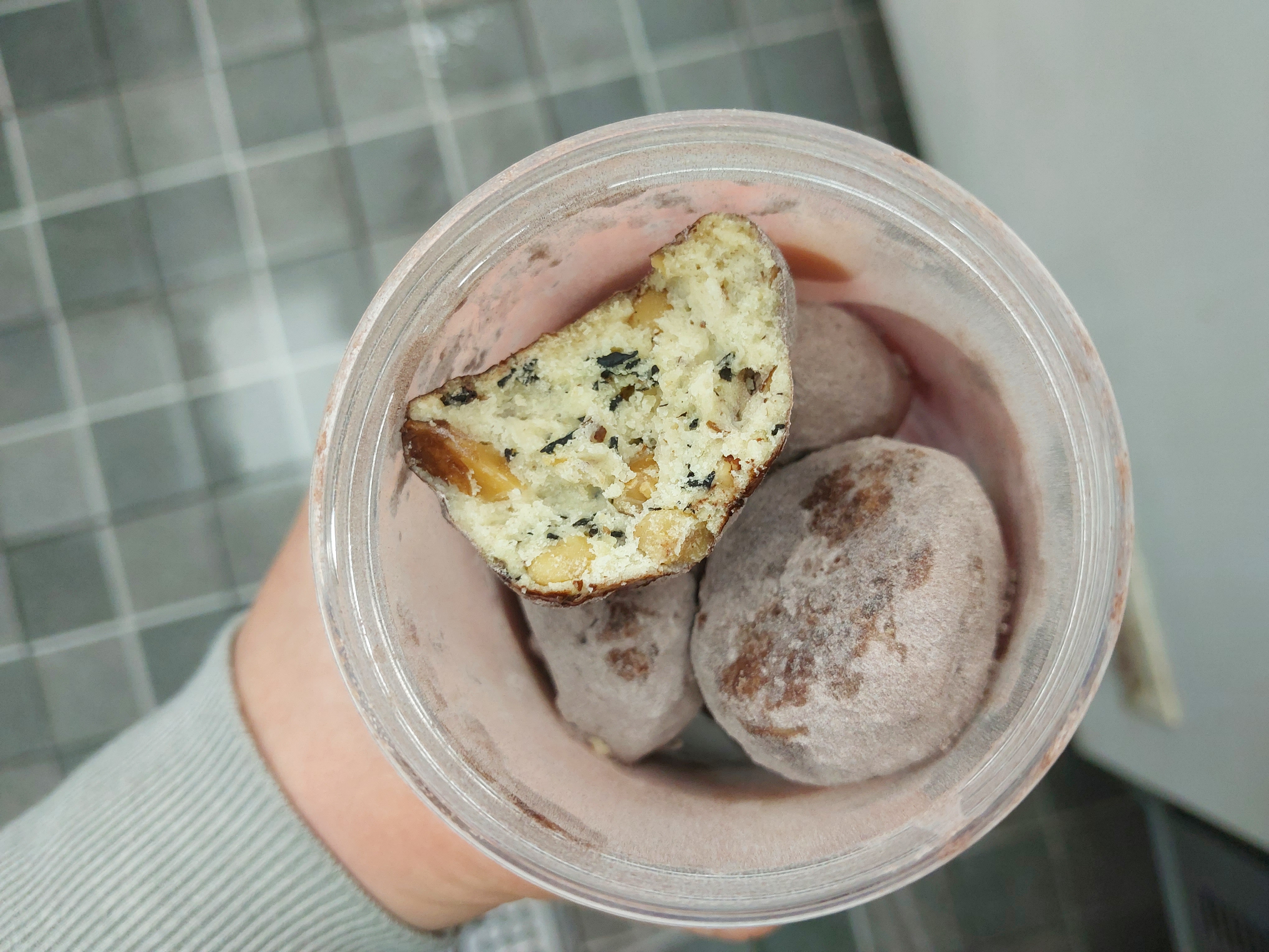 단면은 이렇게 생김. 위의 두 쿠키는 단면이 초코색이고 똑같은데 이거는 달랐음. 까만게 홍차인것으로 추정됨
