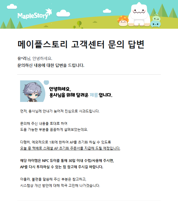 며칠 후인 10월 말일 날 이렇게 답이 왔더군요. 나머지 얘기는 나중에 ㅎ