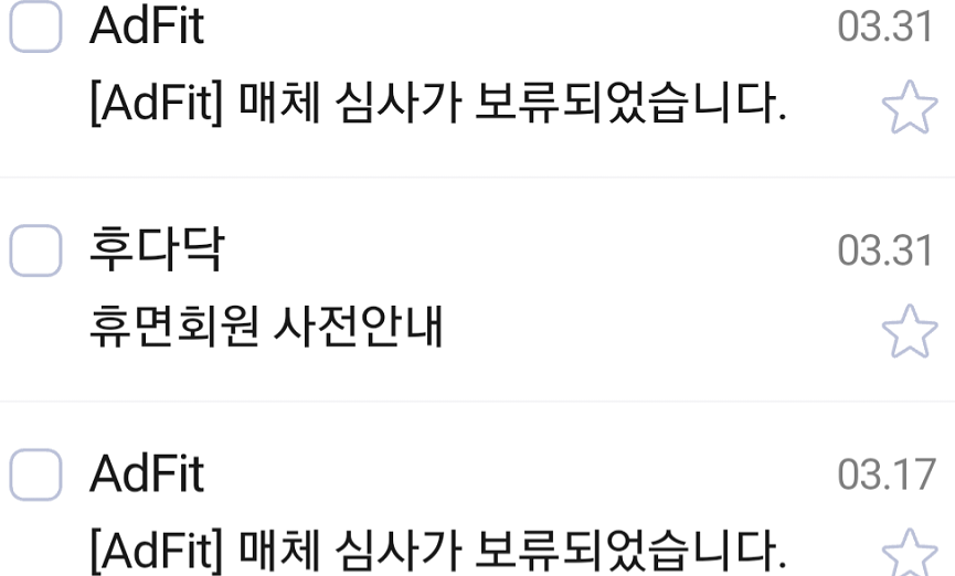 두 번 신청했으나 두 번 다 보류...심지어 네이버까지. 좀 더 다듬고 손보면 가능하겠지? ㅋㅋ 반려가 아닌 것을 다행으로