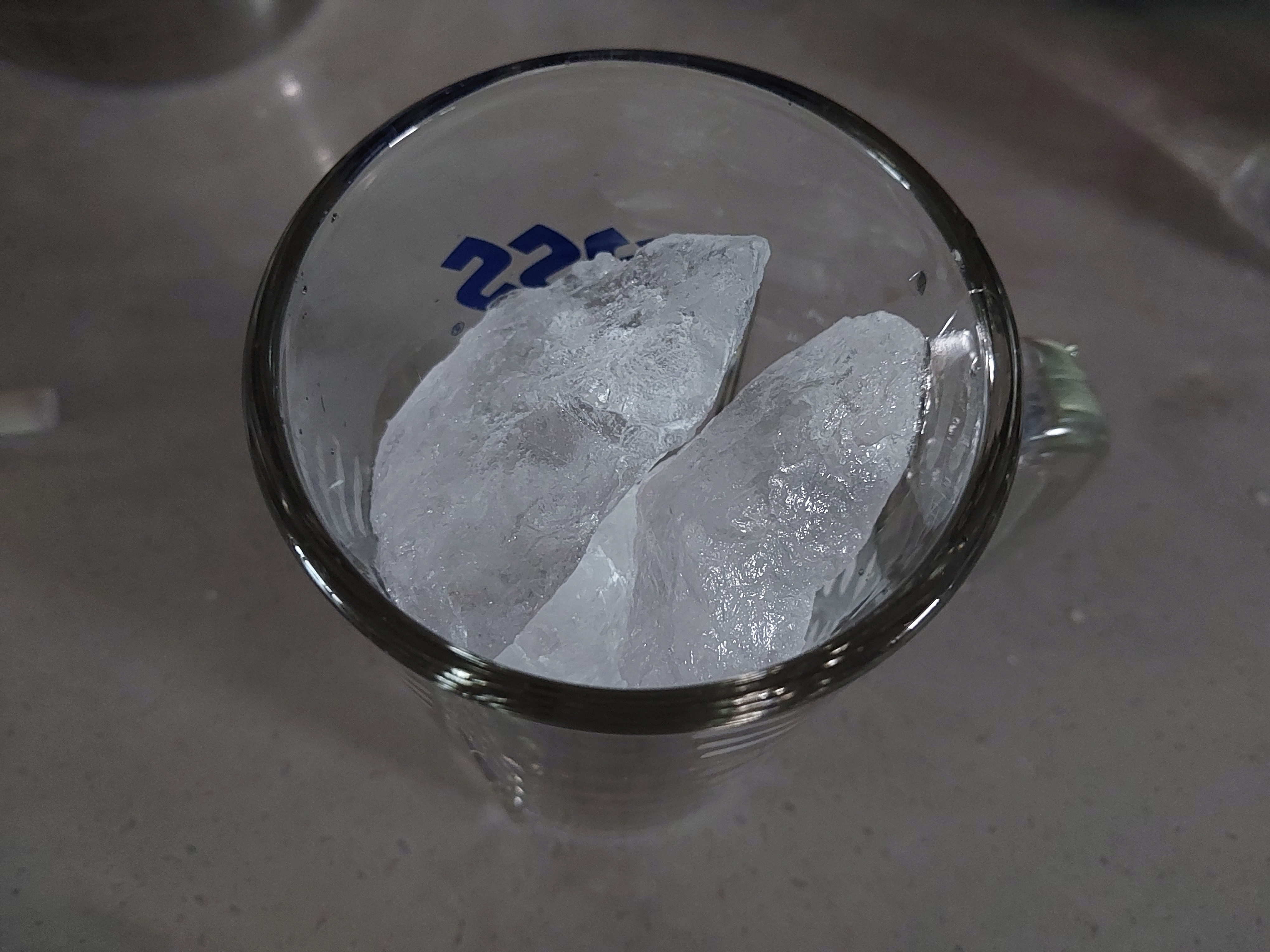 큰 컵을 하나 꺼내어 얼음 담아주기. 원래는 다른 컵을 쓰려다가 바꾼거!