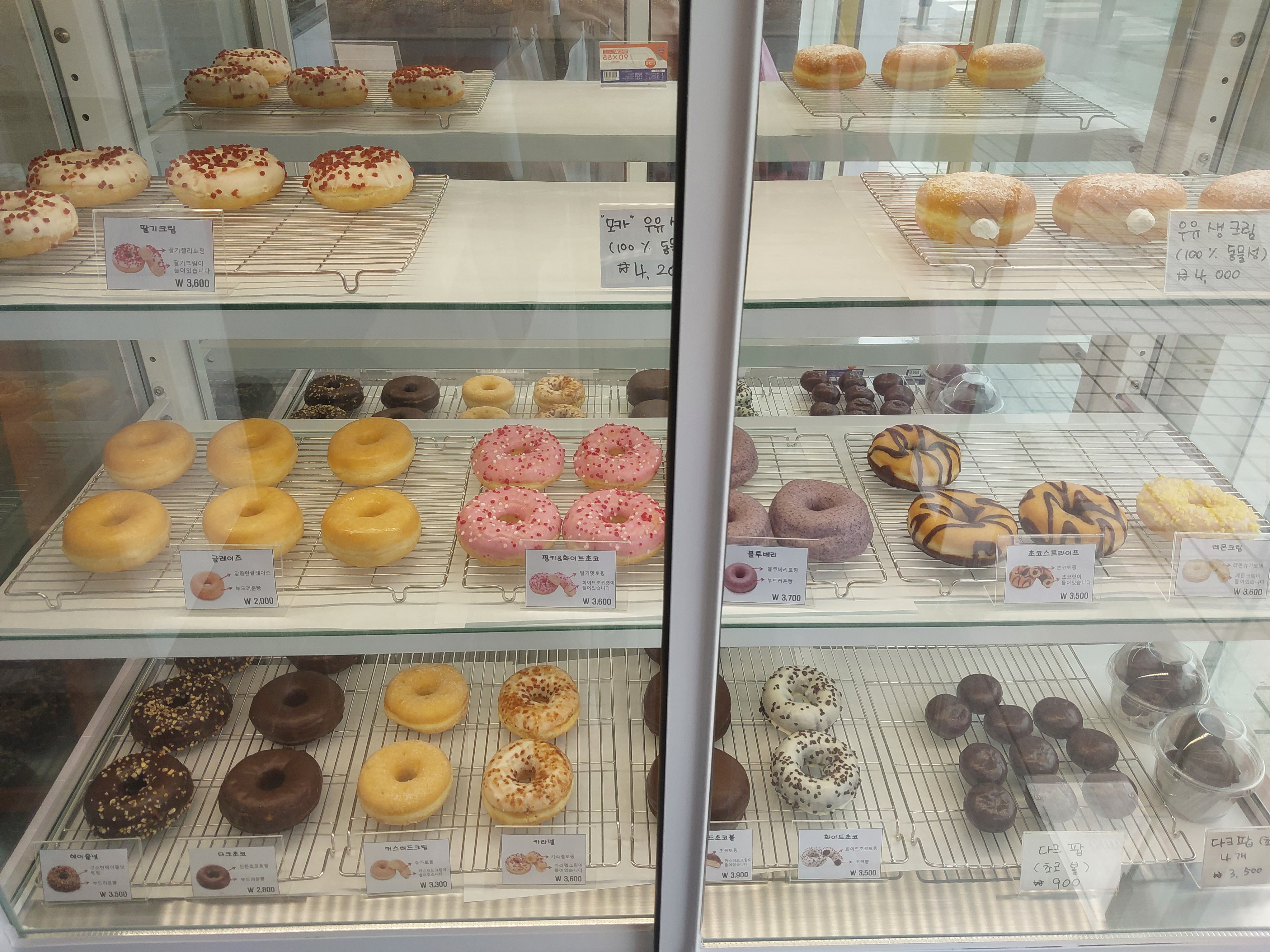 기존에 '감성커피'라는 카페였던 곳이 도넛 가게가 됐더군요...으아 도대체 왜 이 자리는 항상 바뀌지?