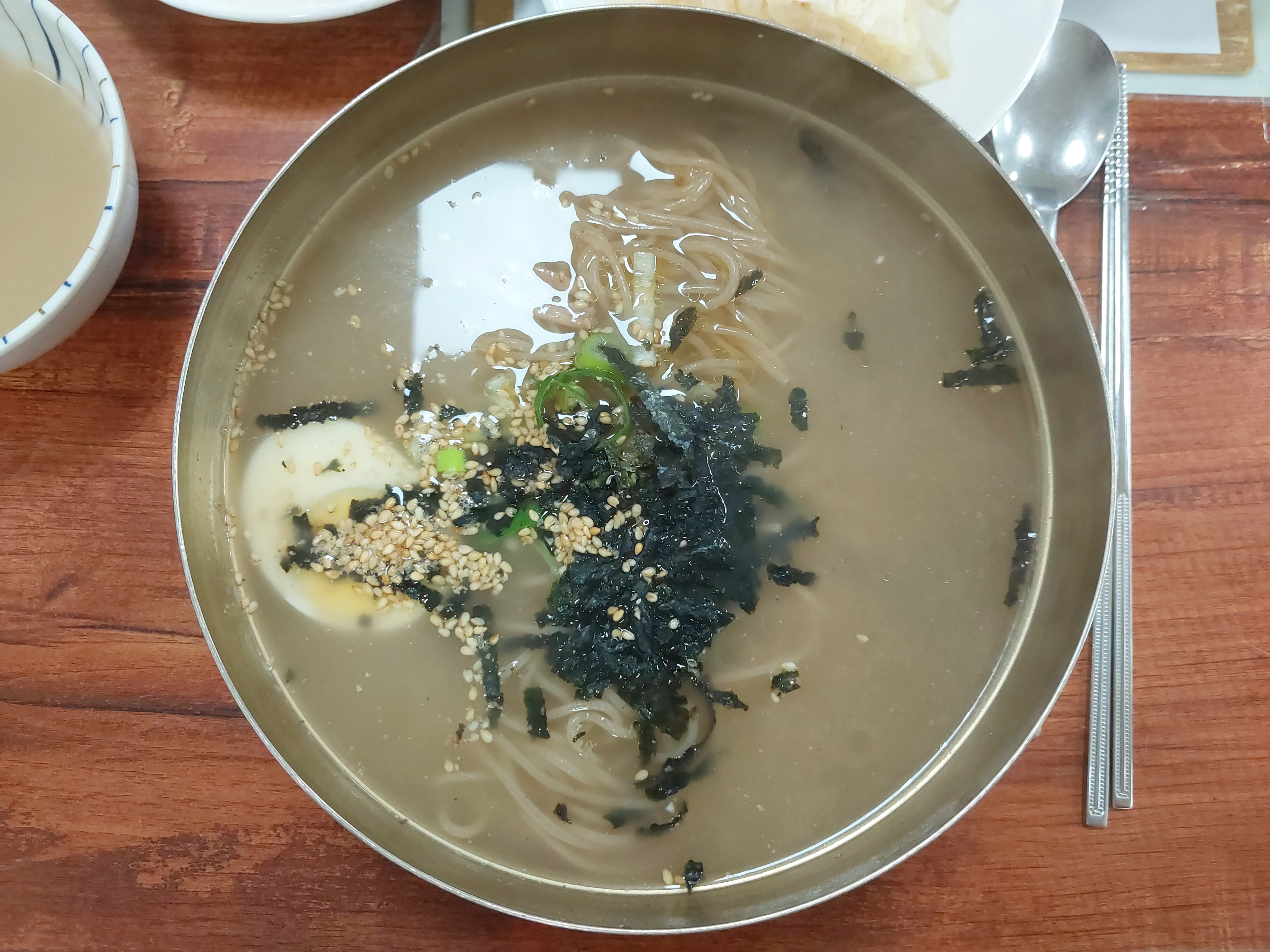 그냥 가기엔 아까워서 차선책으로 들른 주변에 있는 어느 막국수집. 온면 하나 만두 하나 시켰습니다.