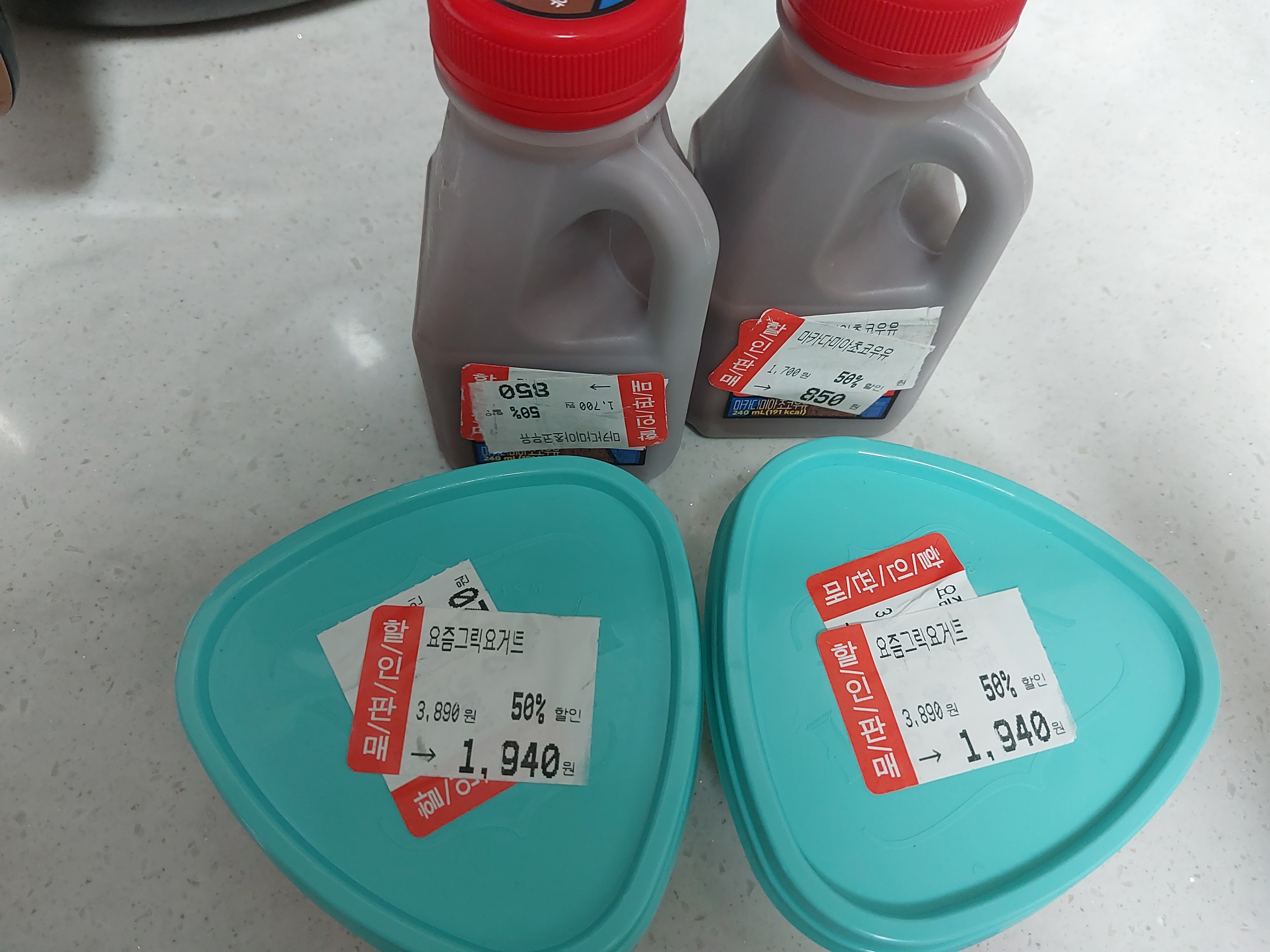 며칠 전 동네 중형마트에서 싸게 하길래 사왔던 초코우유 두 개와 매우매우 꾸덕한 그릭요거트!!