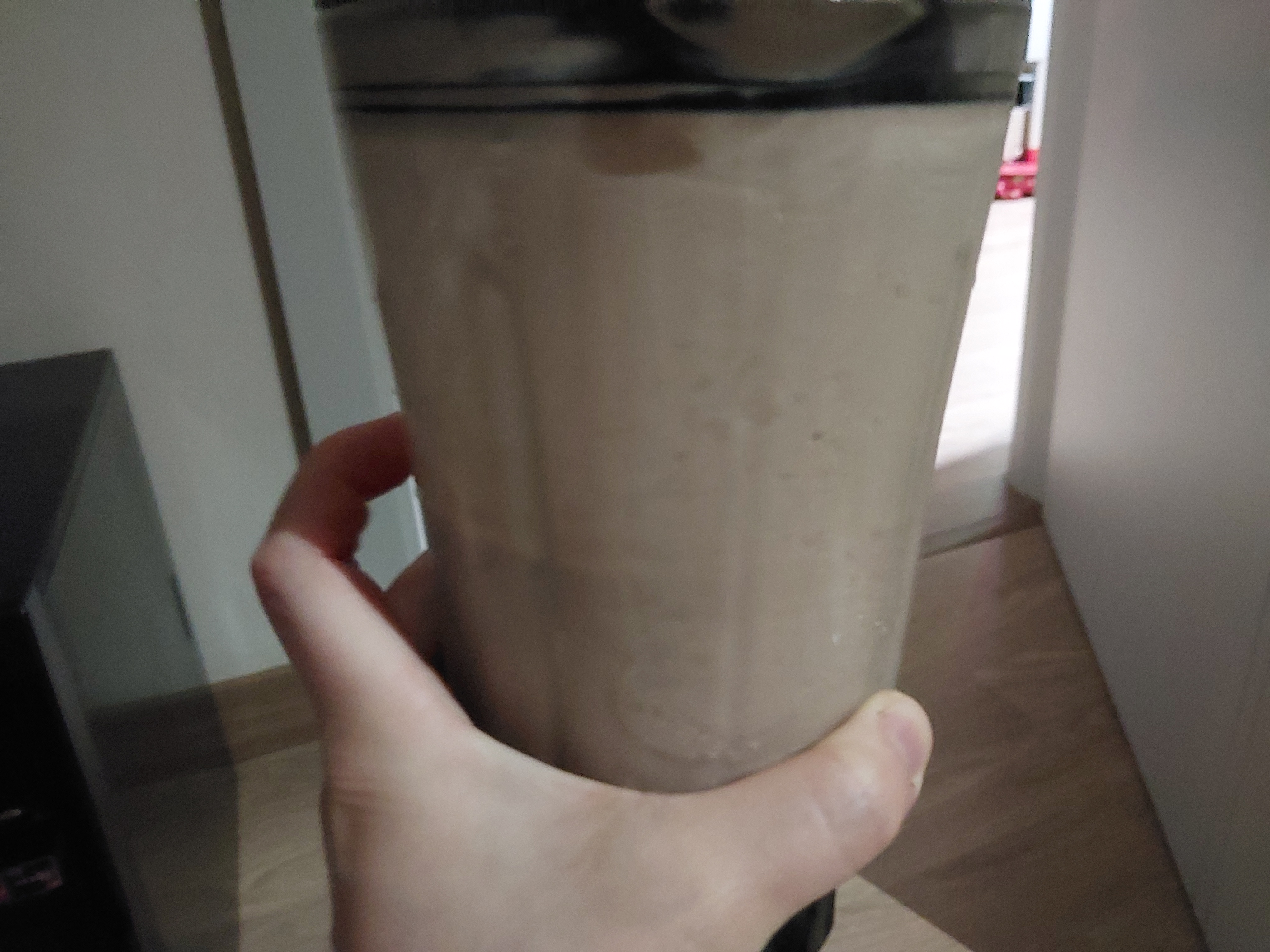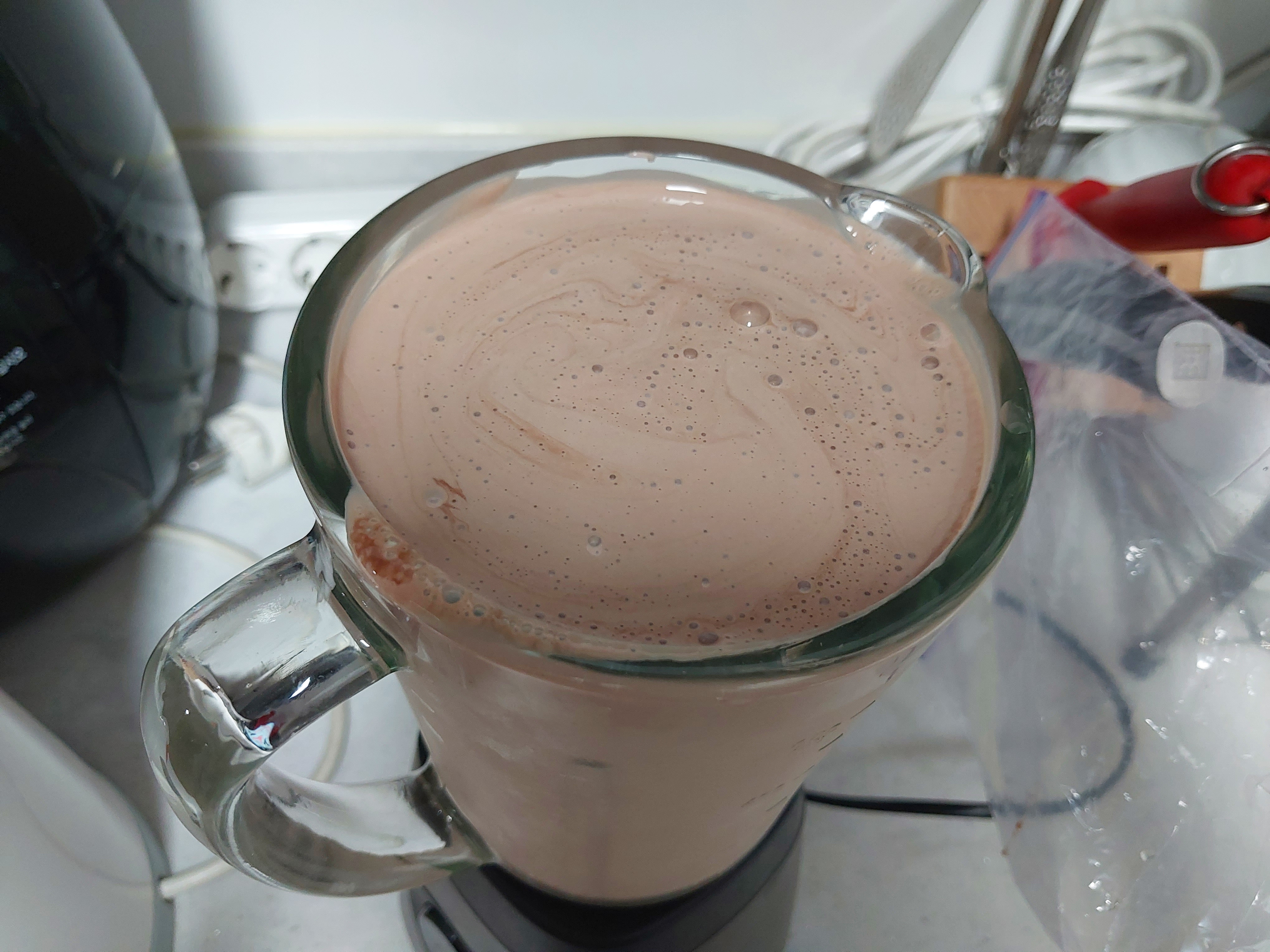 다 넣고 갈았더니 이렇게 됐네요?! 우유여~? 요구르트여~? 참고로 매우 걸쭉했죠 ㅋㅋ 솔직히 초코 요구르트라 하고싶던!