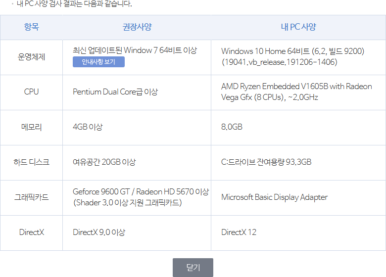공홈에 탑재된 기능으로 제 컴퓨터 사양을 살펴보니 안 맞는 부분은 없더군요