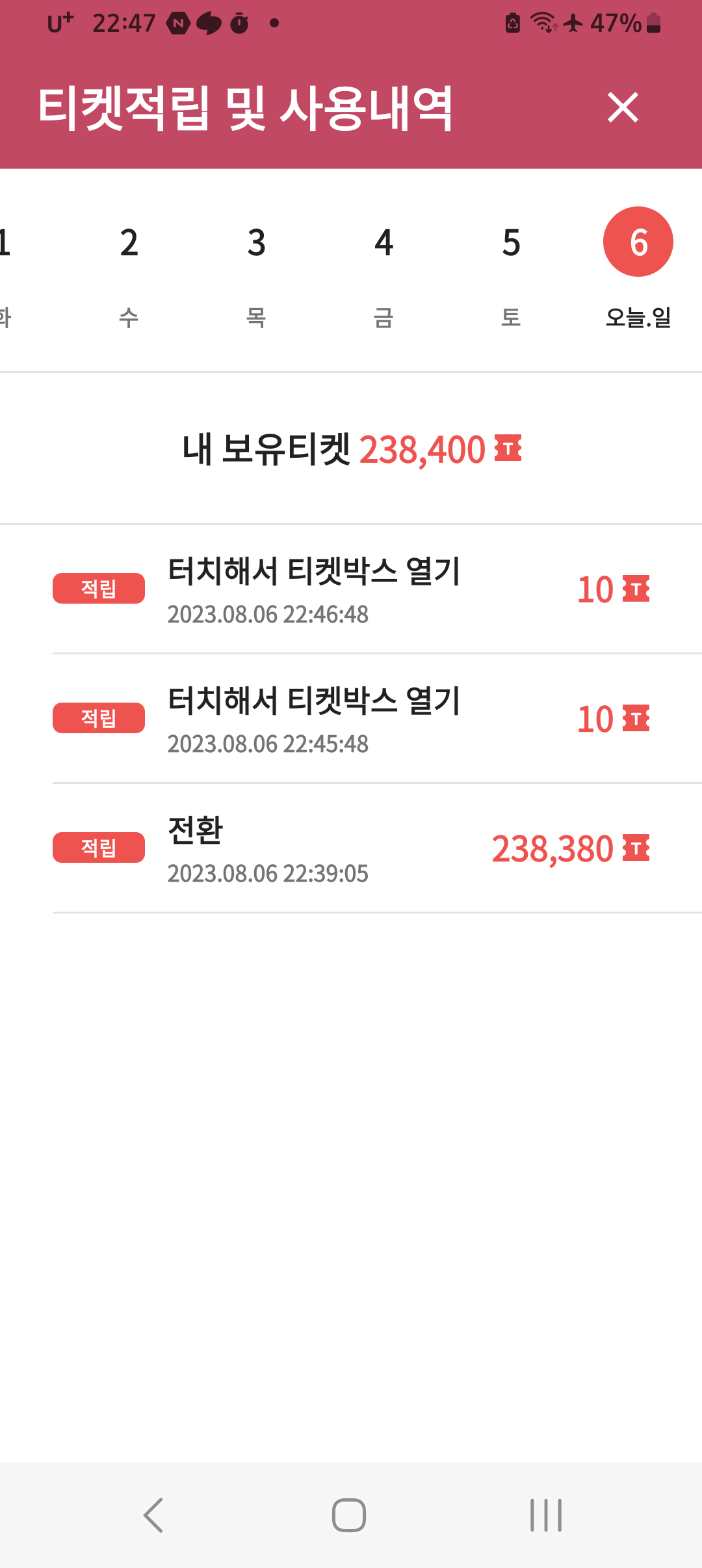 참고로 바뀐 티켓얻기에 대한 설명. 열 배라면 난 23838개였던 거네