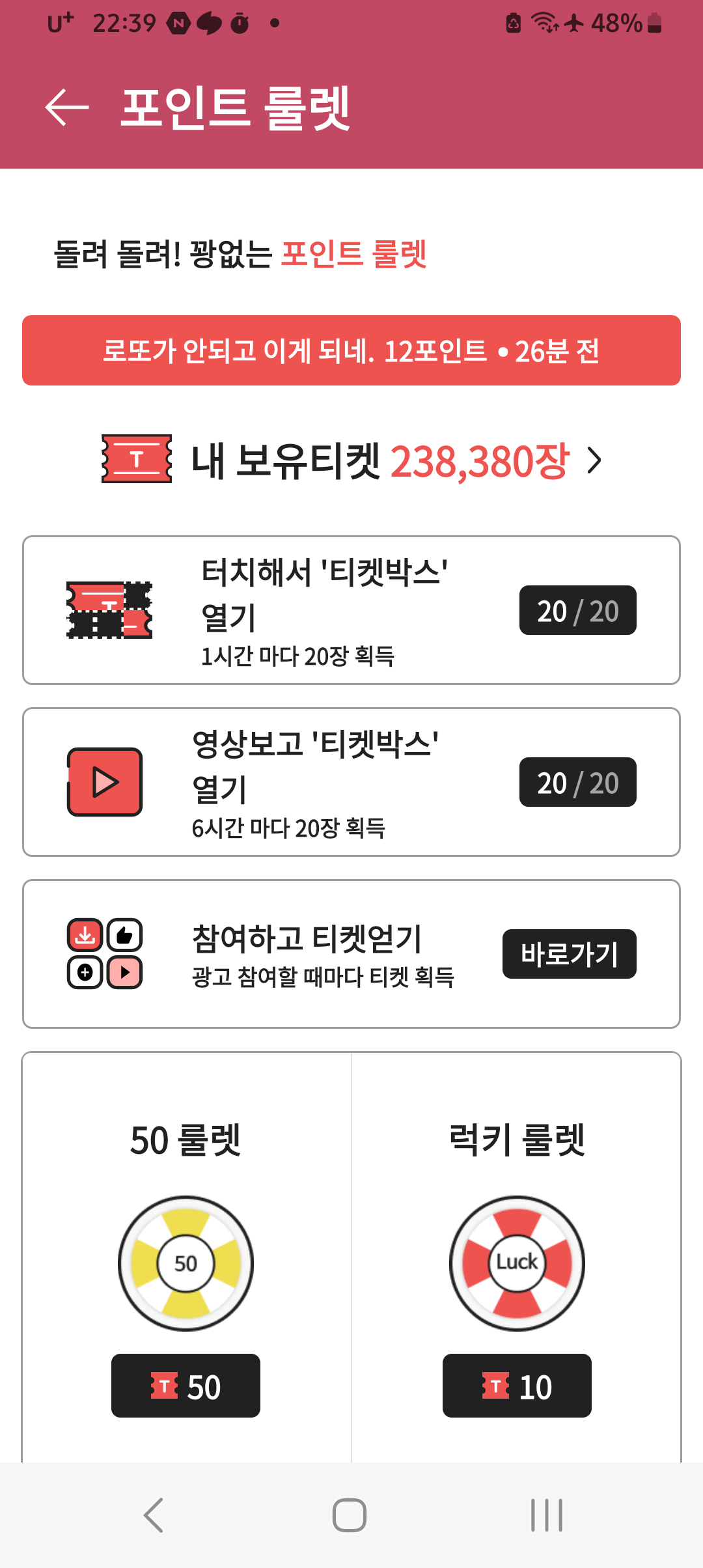 참여하고 티켓얻기는 광고 참여로 티켓을 얻는 방식이군요? 에휴 귀찮아~