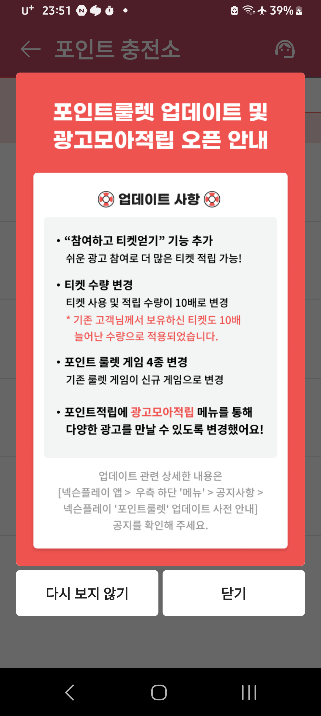 어제 22시 넘었을 때 평소처럼 넥플 룰렛에 들어갔는데 이렇게 돼있네요?