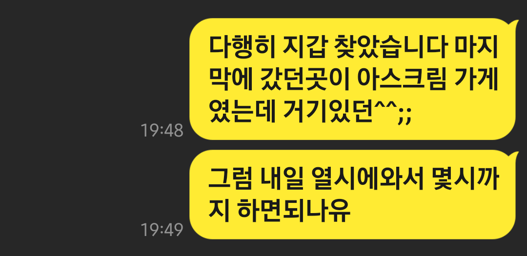 파출소도 일터에도 가보고 lost112도 살펴보고 들렀던 그 밖의 장소에 싹 다 가봤습니다... 결국 가장 마지막에 들렀던 장소인 아이스크림 가게서 발견됐지요