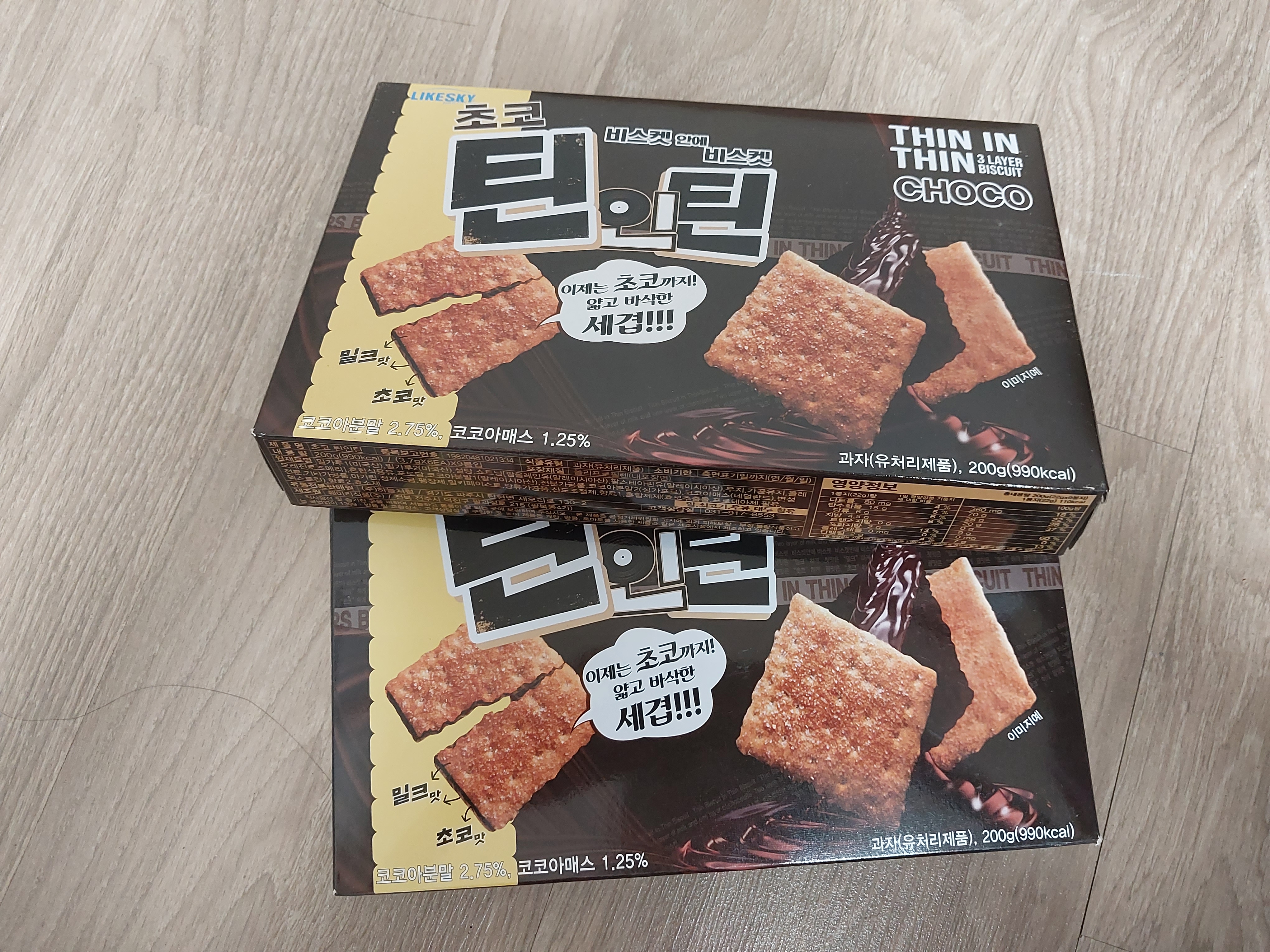 틴앤틴 과자가 맨 처음엔 계피맛으로 나왔습니다... 나중에 슈퍼에 보니까 초코 맛도 있더군요?