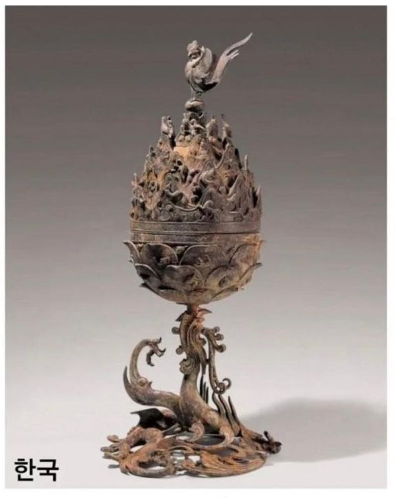백제시대에 만들어진 향로. 백제가 멸망할때 누군가 벗기지 않기 위해 땅 밑에 숨겼다는 주장도 있는데 대향로를 감싼 천조각도 발견했기 때문에 시간의 흐름에 따른 유실보다는 누군가 의도적으로 숨겼을 가능성이 있긴한 듯하다. 발견 초기 중국학자들은 작품 의수준과 도교적 표현 때문에 중국유물로 추정했다. 한국 학자들도 너무 수준이 높고 백제가 불교국가인 점을 고려해서 중국에서 수입해온걸로 추정했다. 하지만 이후 조사 결과 유물이 발견된 장소가 백제의 위덕왕이 성왕을 추모하기 위해 만든 절이어서 백제유물로 확정되었다.