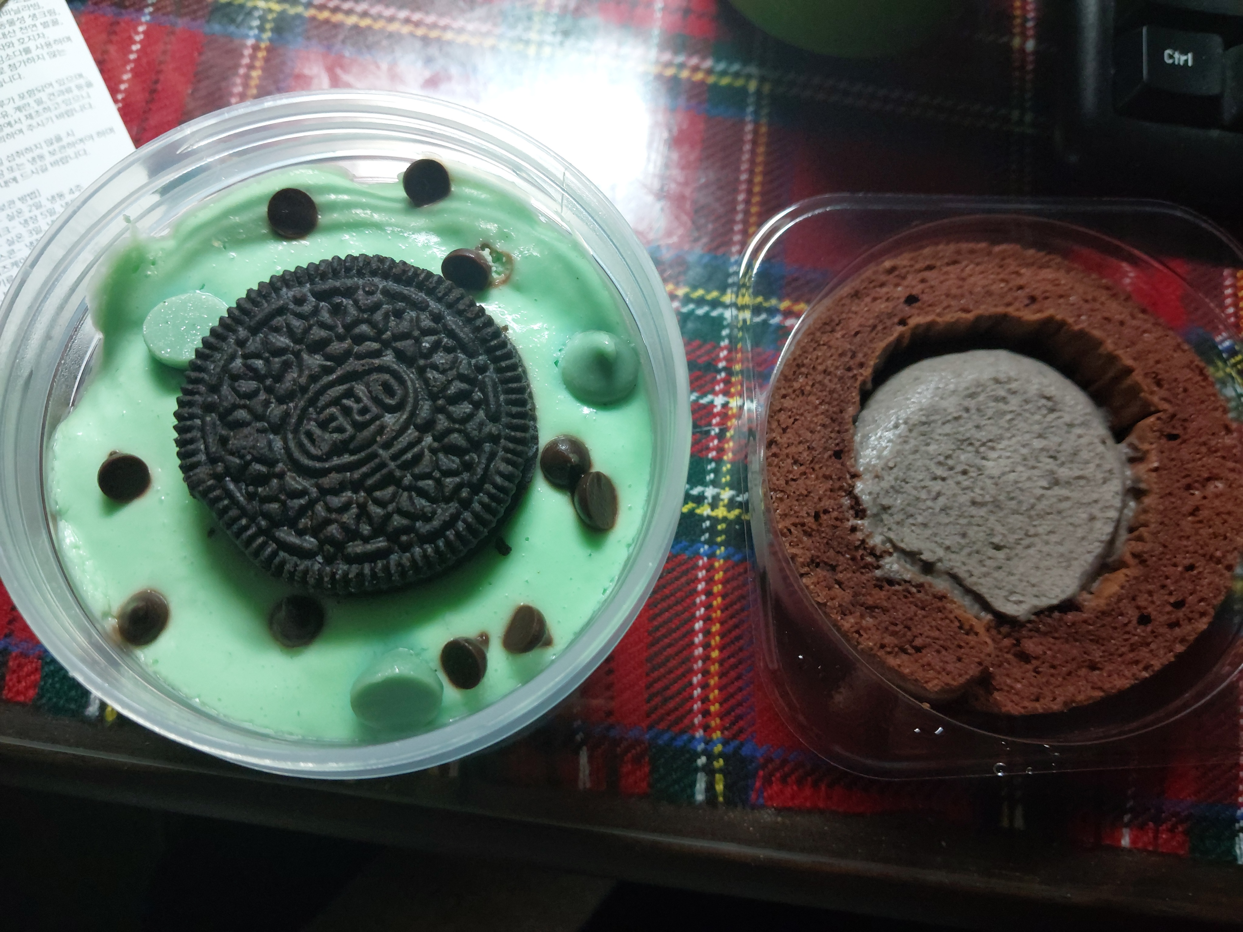 민트초코 맛을 집에 있던 초코롤과 함께 먹은~~ 아무튼 맛있던!!
