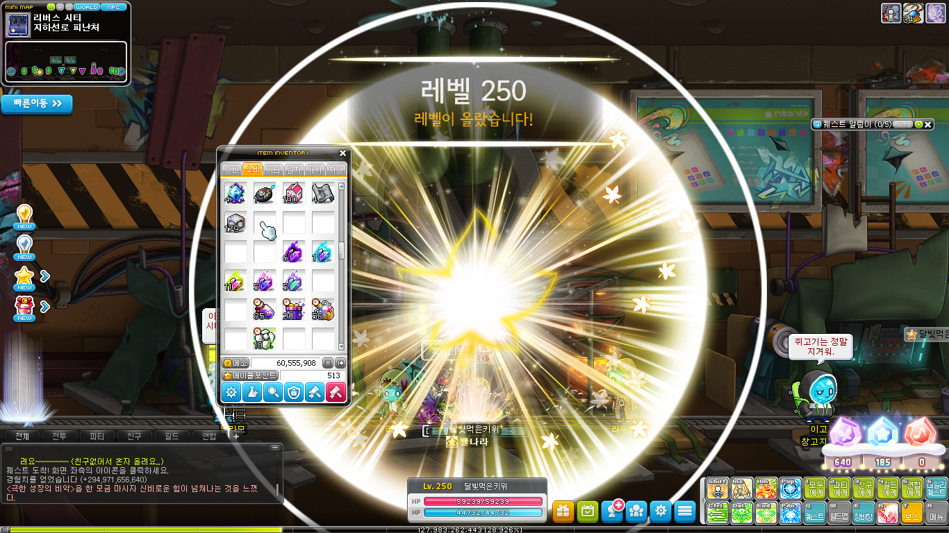 2본캐도 250, 즉 구구만렙으로 올랐드앙~~!!