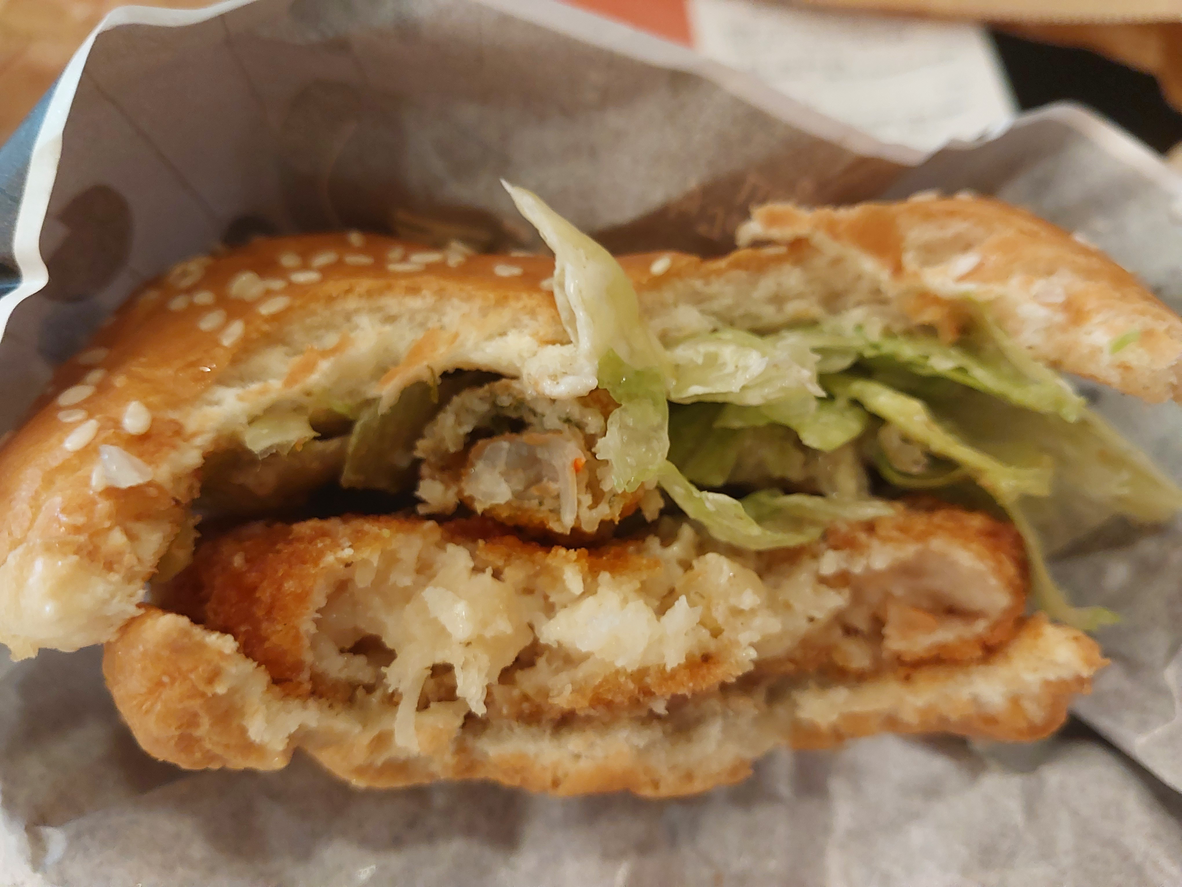 둘다 맛나네요 ㅎ 새우버거 단면은 이렇게 생겼네