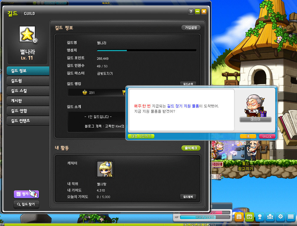 5.23 길드 정기 지원을 길드 정보에서 직접 주네?!