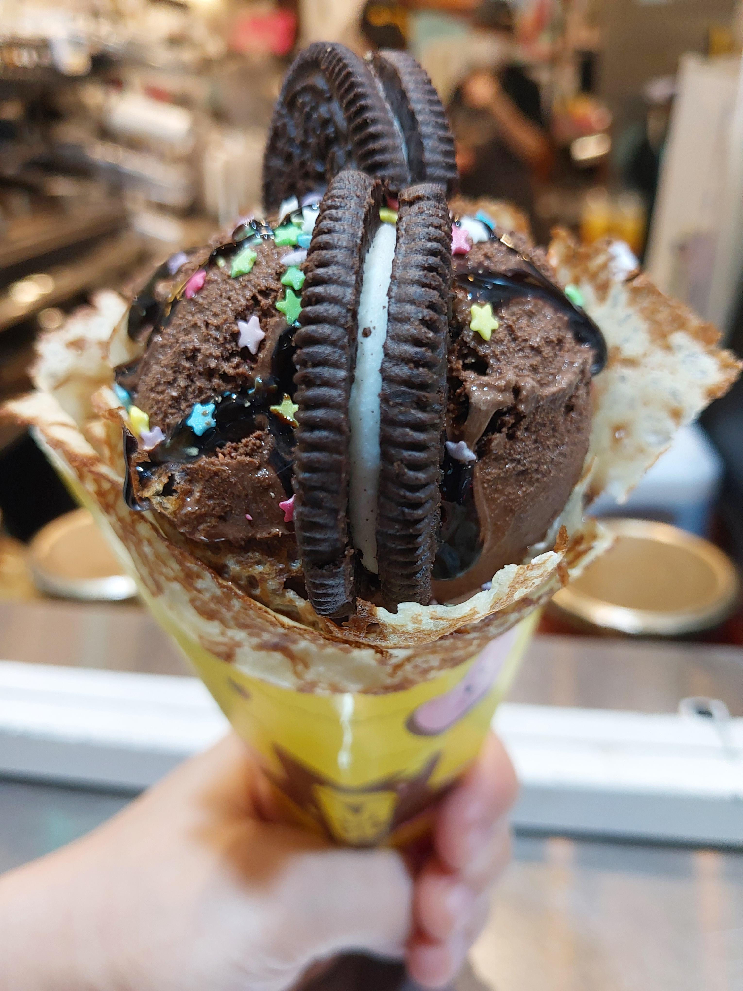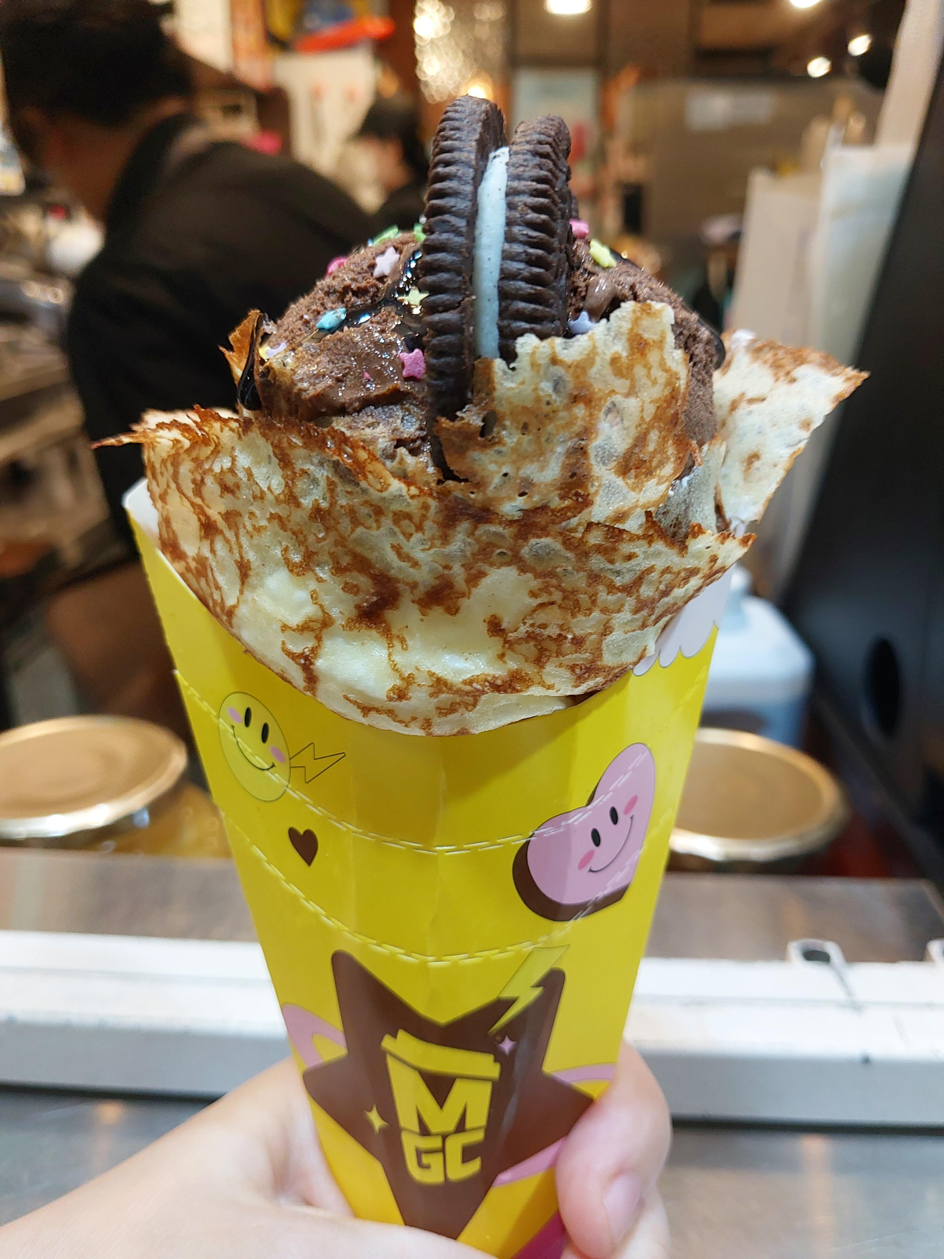 는 농담이고 어제 저녁 때 먹은 지구별 초코크레페라는 메뉴입니다 ㅎㅎ