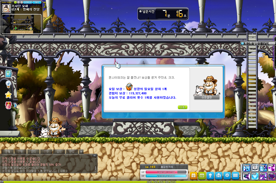 부캐 중 하나로 간만에 몬파 완료!! 앞으론 자주 해야징 ㅎ