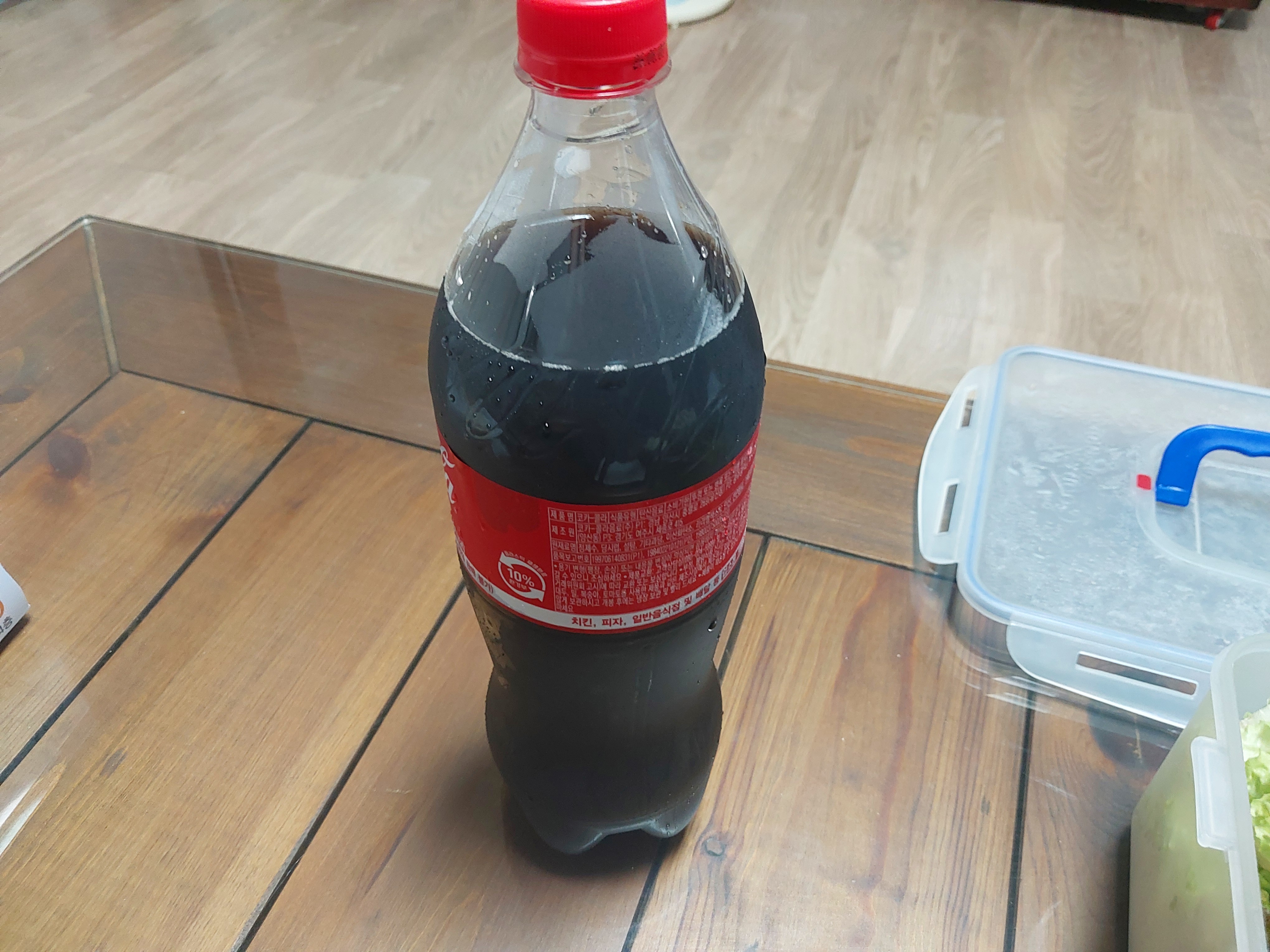 사장님이 오래기다려 죄송하다며 콜라를 큰 걸로 주셨는데 막상 콜라도 치킨무도 안 받는걸로 고른 상태.