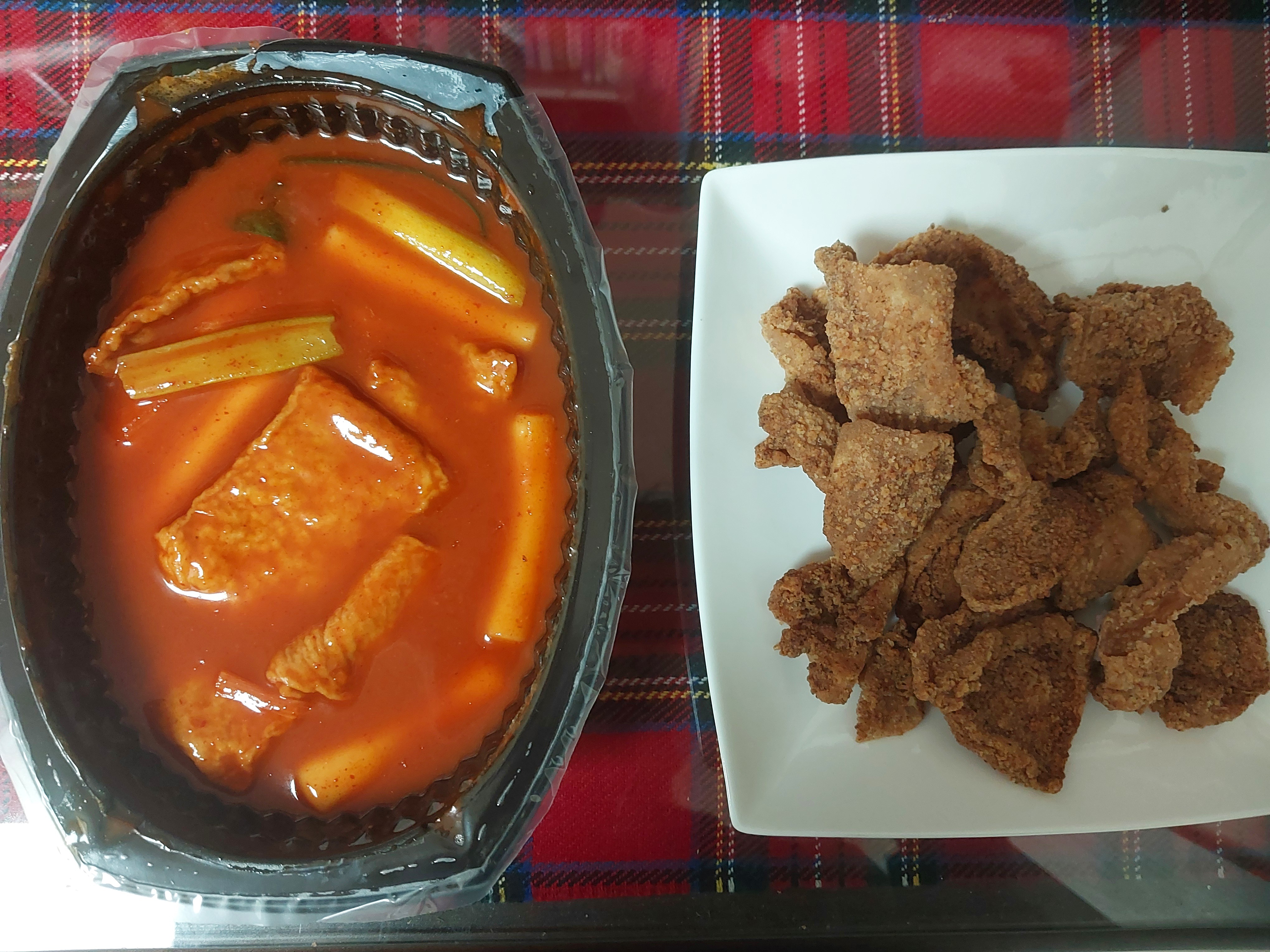 지난 주 저녁 때 집에 있던 닭껍질튀김과 함께 BBQ 떡볶이를~~