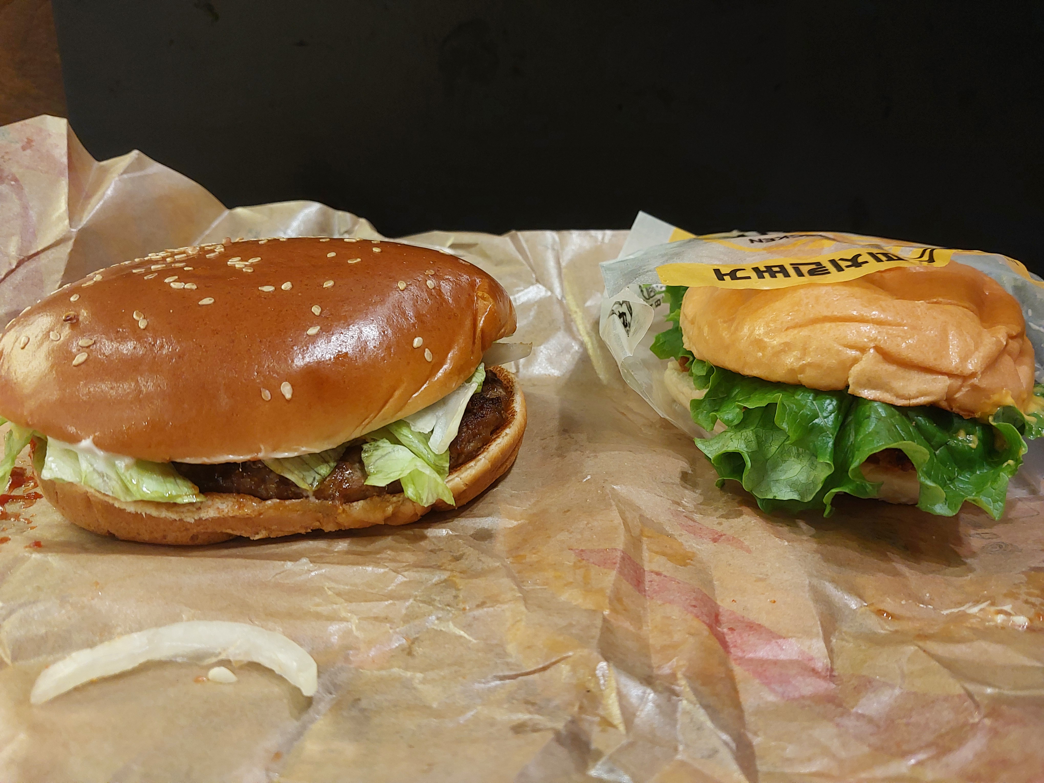 버거킹의 풀드버거 스파이시와 프랭크버거의 치킨버거...!!