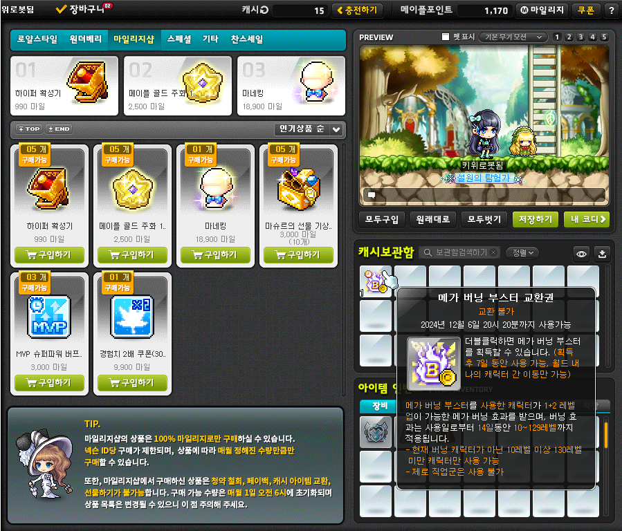 부스터가 생겼다!! 가장 렙낮은 캐릭터 줘야겠다