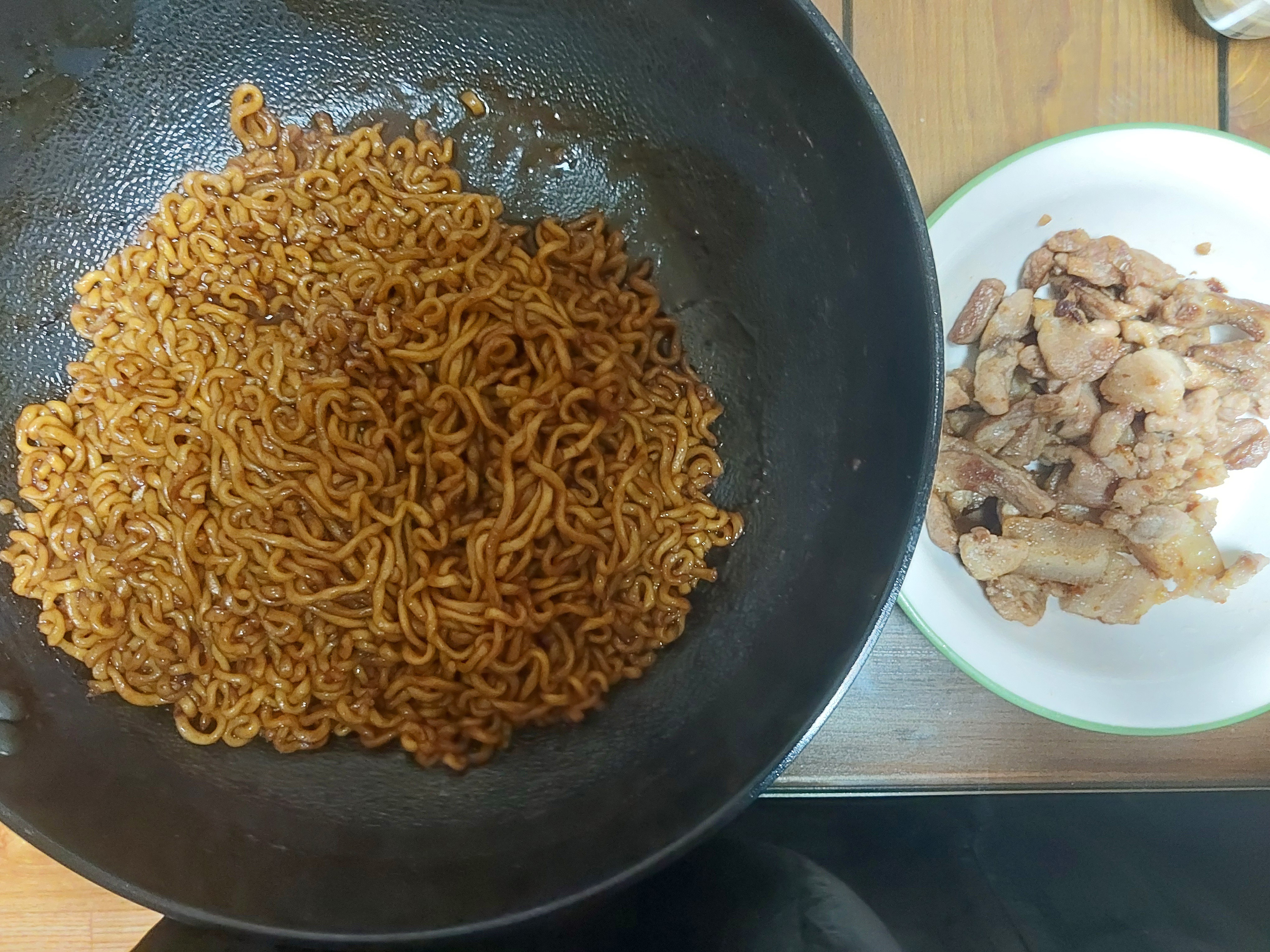 그저께 하얀 짜파게티와 섞어먹었네요 워낙 맵다길래요 후후