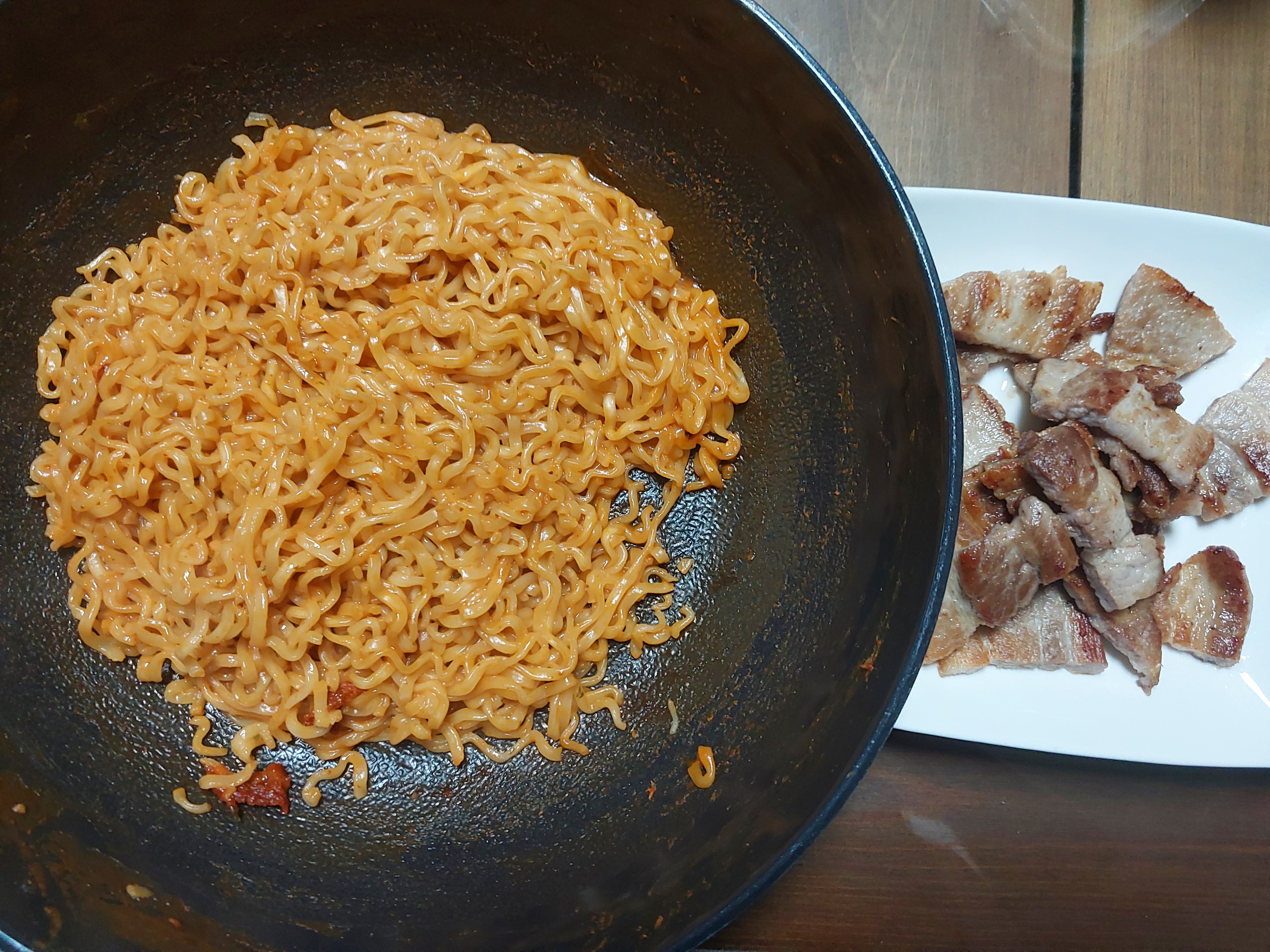 고기와 함께 ㅎㅎ 아무튼 불닭볶음면과 고기는 환상의 조합!!