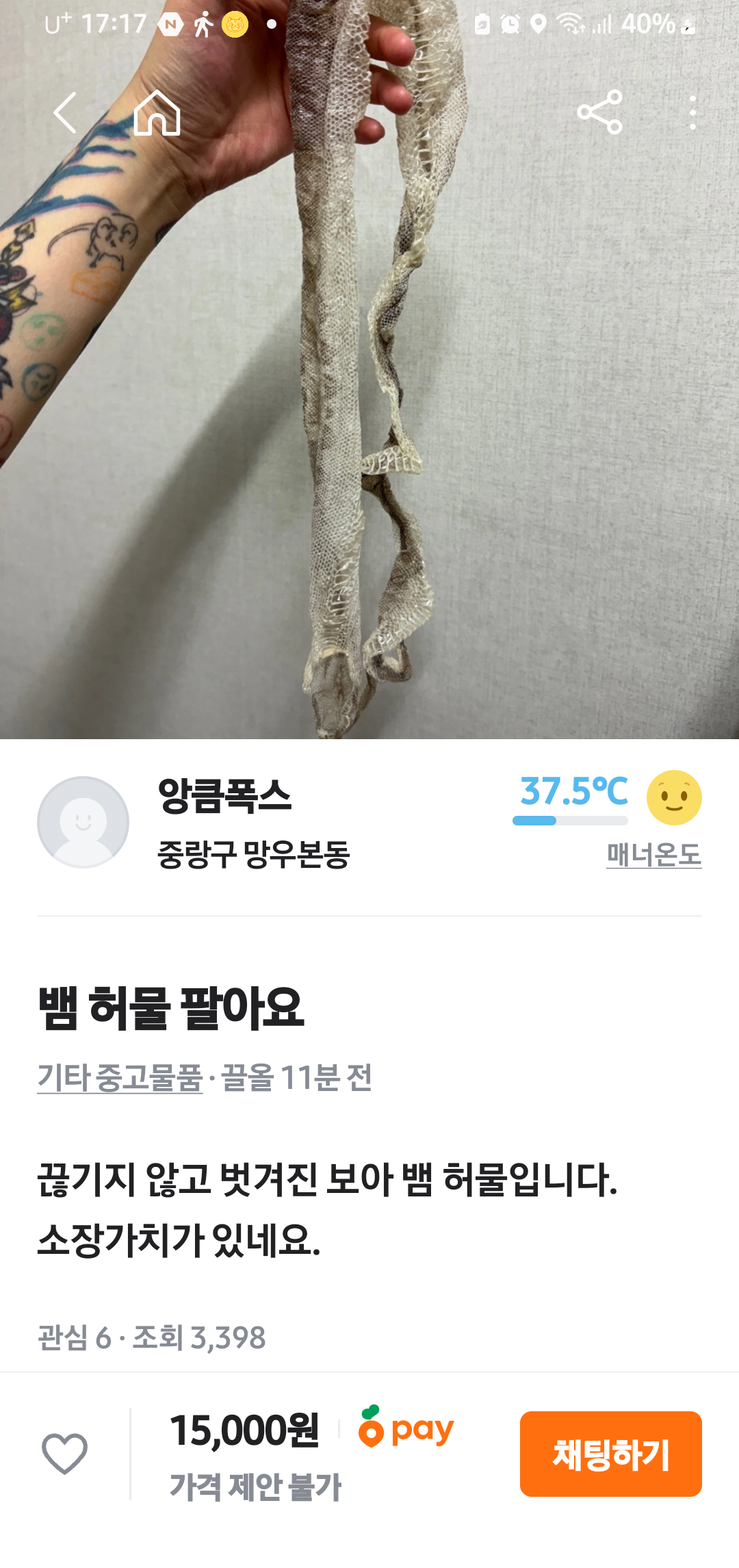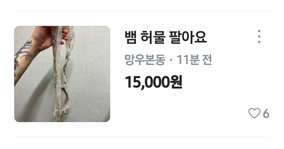 바로, 중고거래 앱에서 뱀 허물을 판다는 글이었습니다 ^^;;