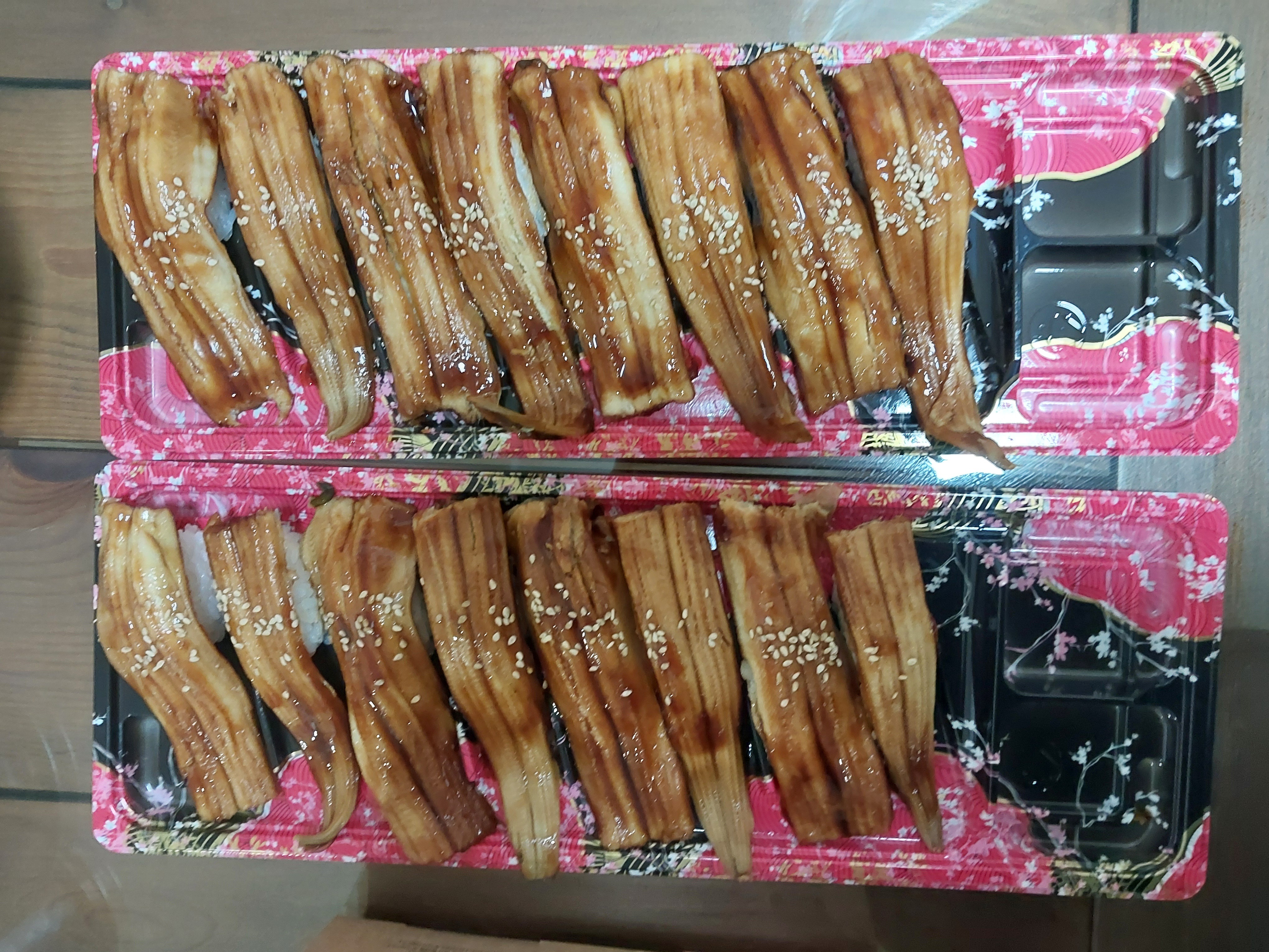 치킨 두 가지와 아빠가 사오신 장어초밥!! 전 초밥은 안 먹었네요