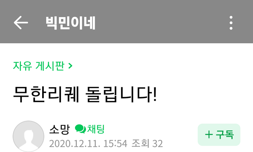 당시 유튜버 '빅민'님의 구독자였기에 카페에 가입하며 활동중이었는데, 어느 회원이 그림을 그려주겠다고 하심.