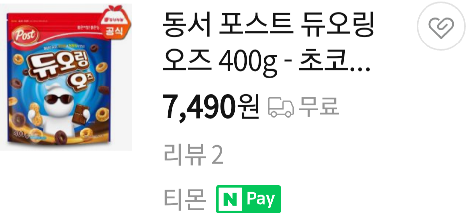 동서 포스트 듀오링 오즈 400g 환상의 듀오 초코링과 땅콩링의 만남! 시리얼