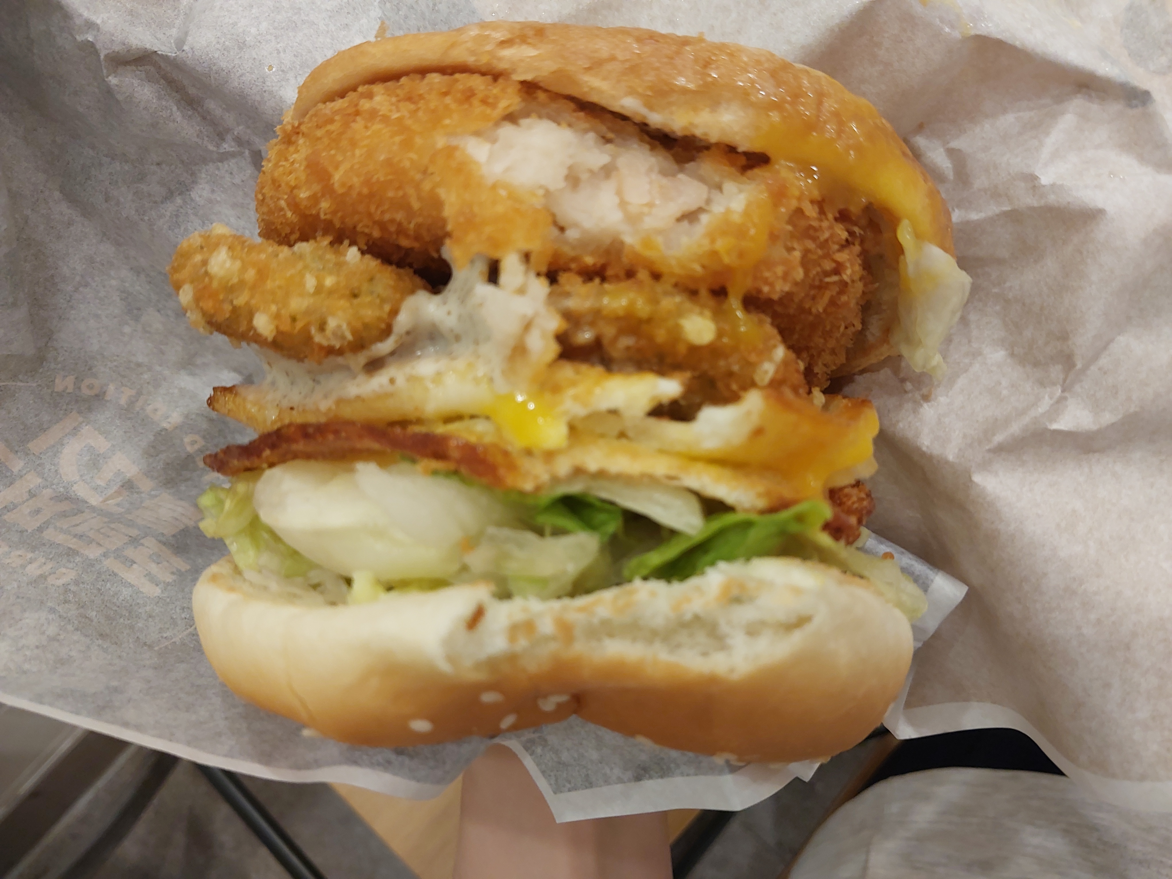 호기심에 찍어본 통새우버거 단면. 아무튼 제겐 둘 다 맛나네요...!!