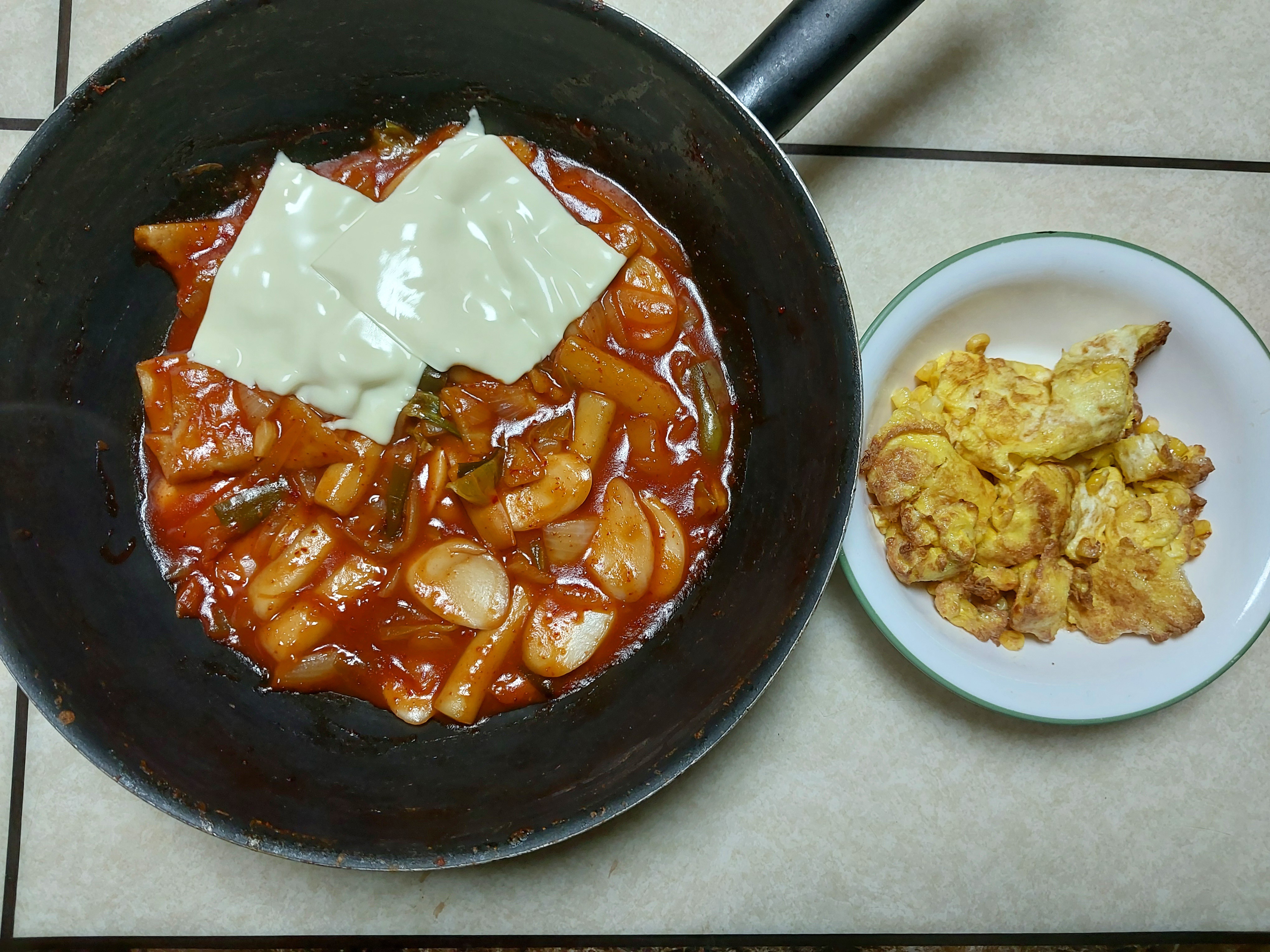 남아있던 떡볶이와 옥수수를 넣어만든 스크램블 에그!!